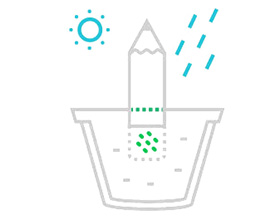 Kalemin arkasındaki bitkisel bazlı kapak, kalemi dikip suladığınızda erir, kalemin içindeki tohumlar toprakla buluşur.